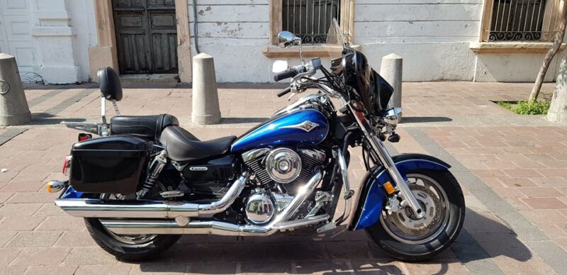 Kawasaki vulcan clasic 1600 cc año 2008 vin 6089. $ 86000 pesos, 27213 millas de freeway. » Buen trato «, nada ruidoso el motor, muy estable y potente. Llantas trasera al 99 %, delantera 95 % mas menos. Accesorios: Alforjas, triple faro, asiento mustang, piloto automático tipo mecánico, respaldo con parrilla, defensas de motor, posapies, windjammer ( vampiro ) con sonido y entradas de usb y toma corriente tipo carro. La pantalla del estéreo se ve muy bajito.